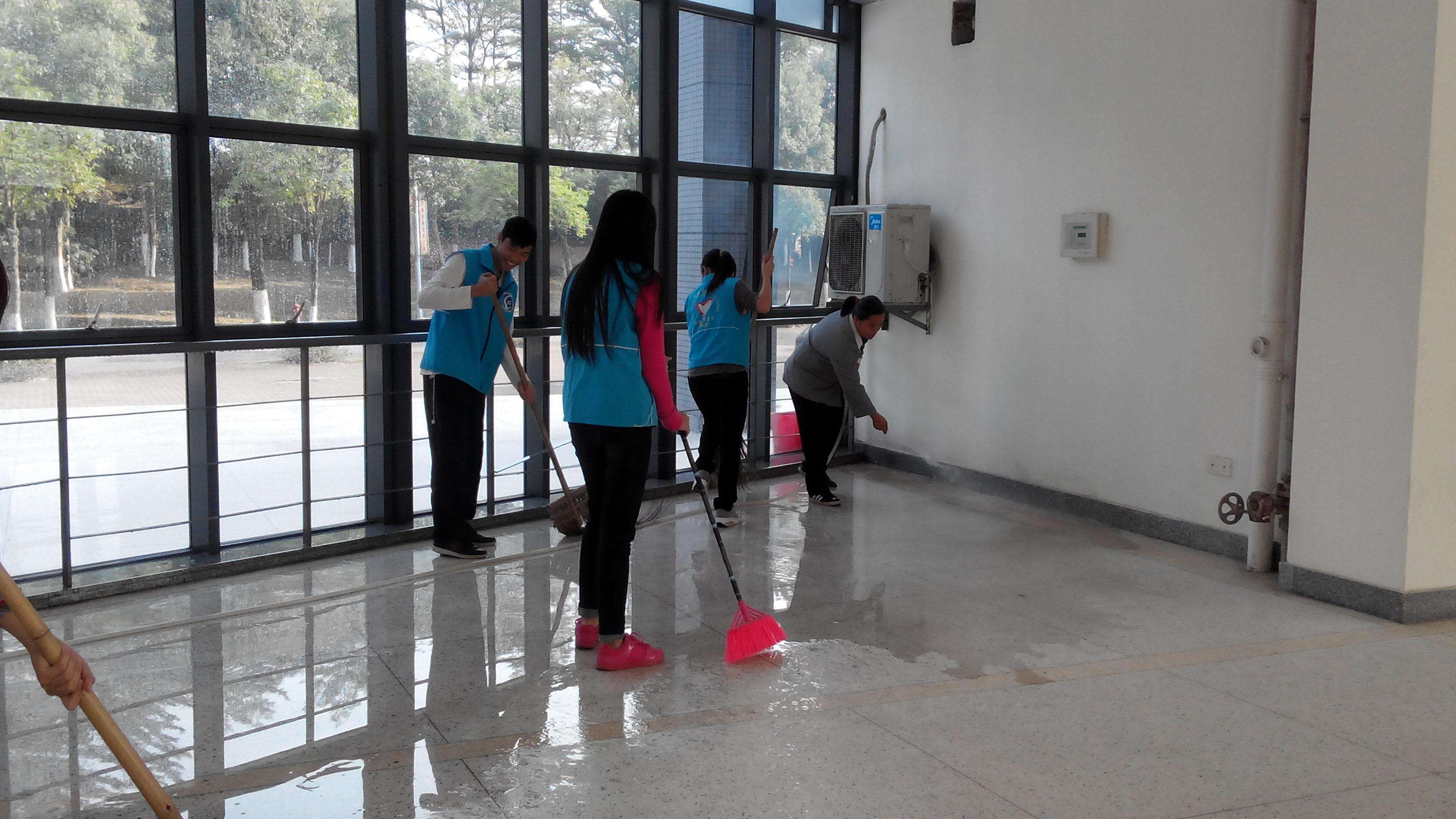 (7)、拖擦地面:潔凈、干爽不留水跡。擦拭臺面、面盆、水龍頭、玻璃鏡。
